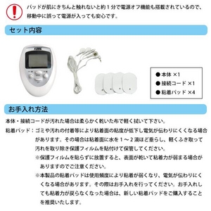 - 本体、接続コード、粘着パッド×4、取扱説明書、保証書(6ヶ月)